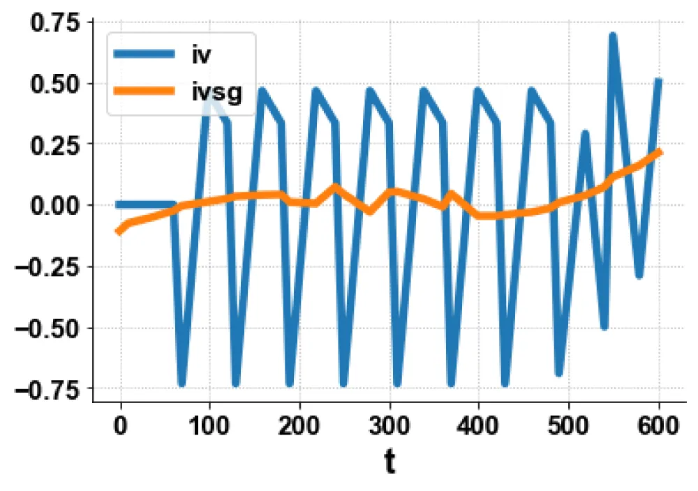 Figure 5a: MNLMPC iv, ivsg vs t.