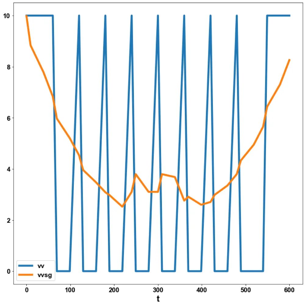 Figure 5b: MNLMPC vv, vvsg vs t.
