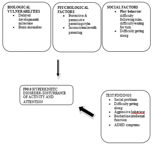 DiagnosisProvisional diagnosis: F90.0: Hyperkinetic Disorder – Disturbance of activity and attention